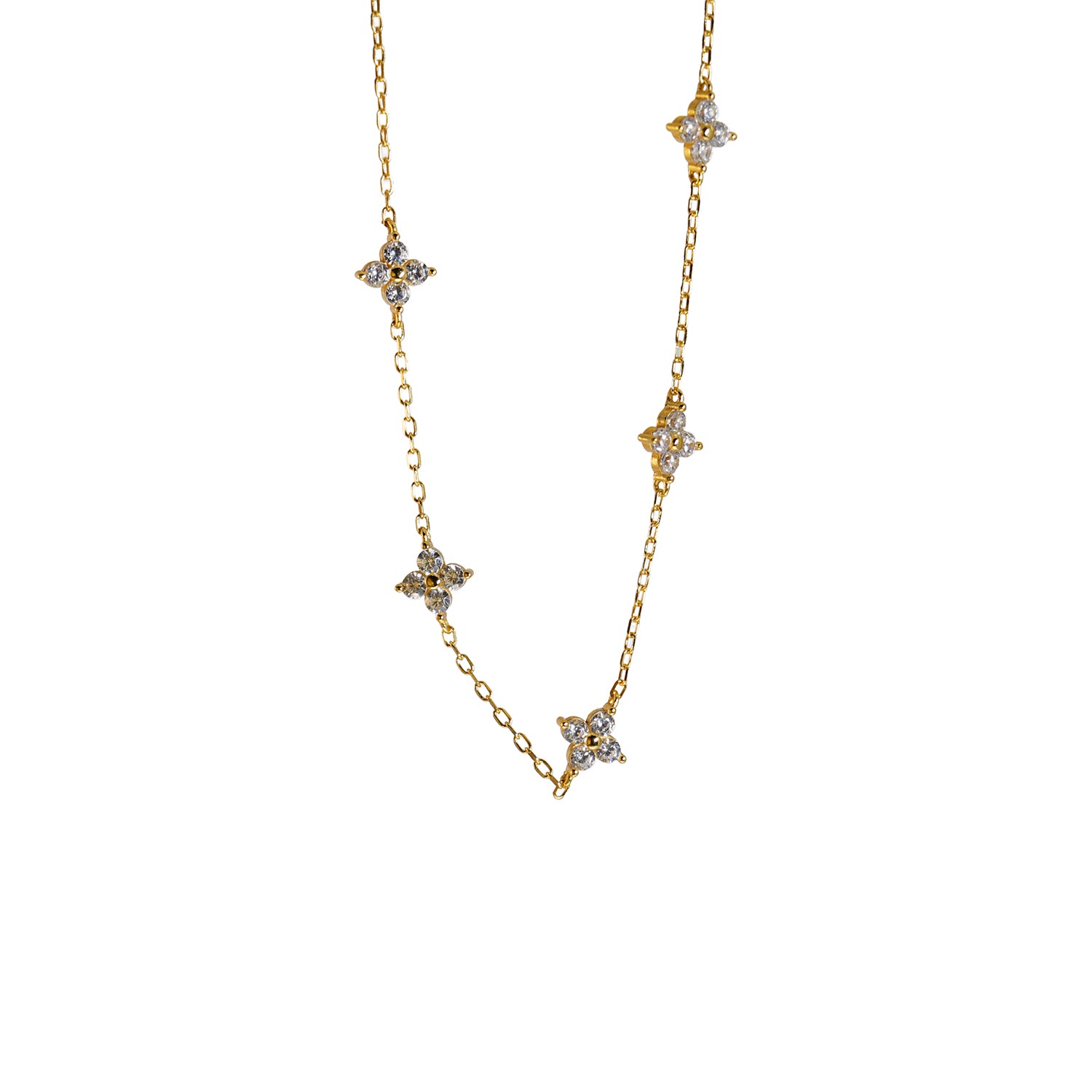 Braccialetto in argento 925 placcato oro, un gioiello elegante e luminoso pensato per valorizzare ogni stile. Il design è impreziosito da piccoli charm a forma di fiore, decorati con zirconi bianchi che catturano la luce e aggiungono un tocco di raffinatezza al polso. Elegante, luminoso e regolabile, perfetto da indossare da solo o in abbinamento. Disponibile in versione oro e argento.