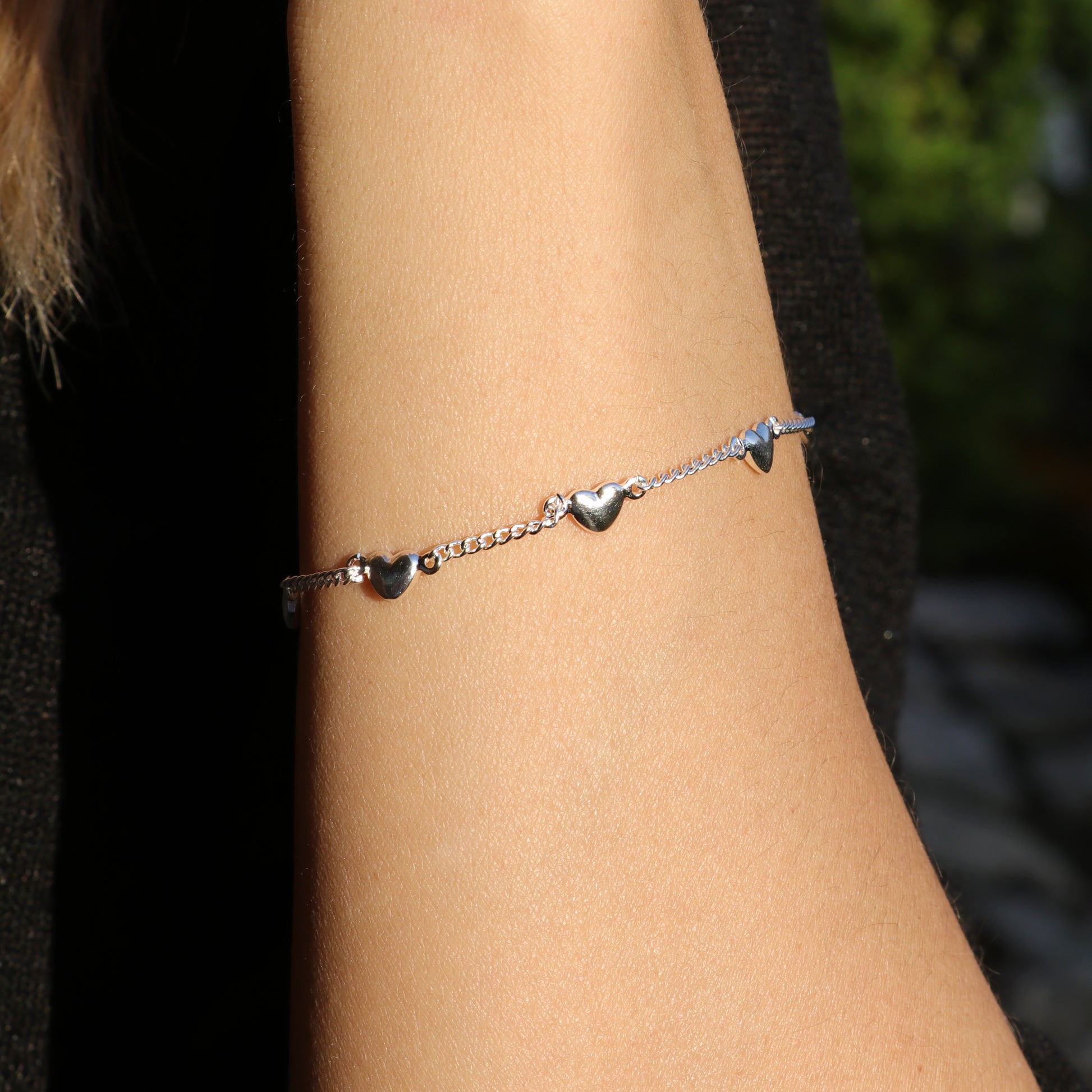 The Heartbeats bracelet is a symbol of love and sweetness, featuring a delicate chain adorned with countless tiny hearts. Each heart represents a beat, an emotion, a special bond that stays with you wherever you go.Lightweight and versatile, it pairs effortlessly with any outfit.