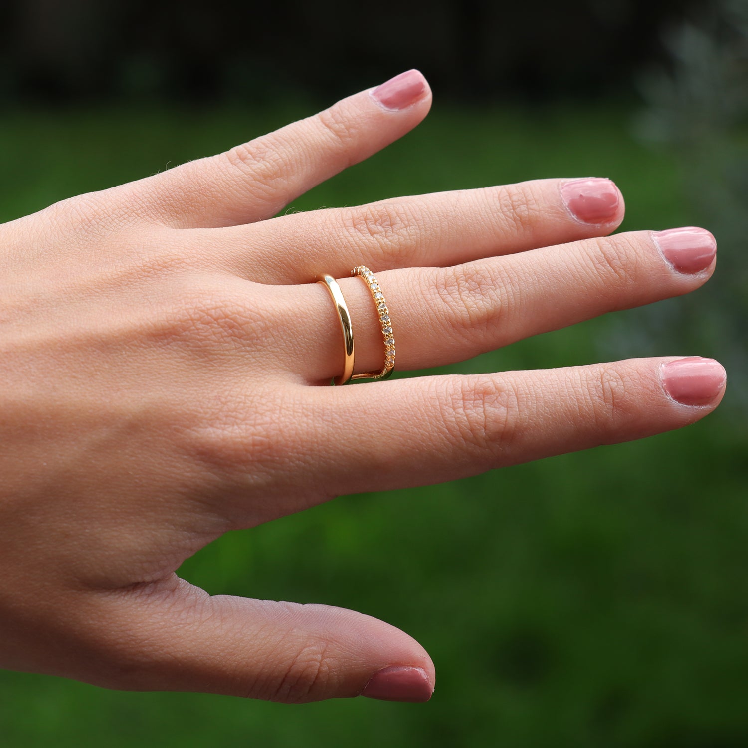 Raffinato anello regolabile in ottone placcato oro, impreziosito da una fila di zirconi scintillanti che regalano luce e fascino al tuo stile. Il design a doppia fascia offre una vestibilità comoda e versatile, adattandosi perfettamente a diverse misure di dita. Ideale da indossare da solo come pezzo statement o da abbinare ad altri gioielli per un look più audace e contemporaneo.