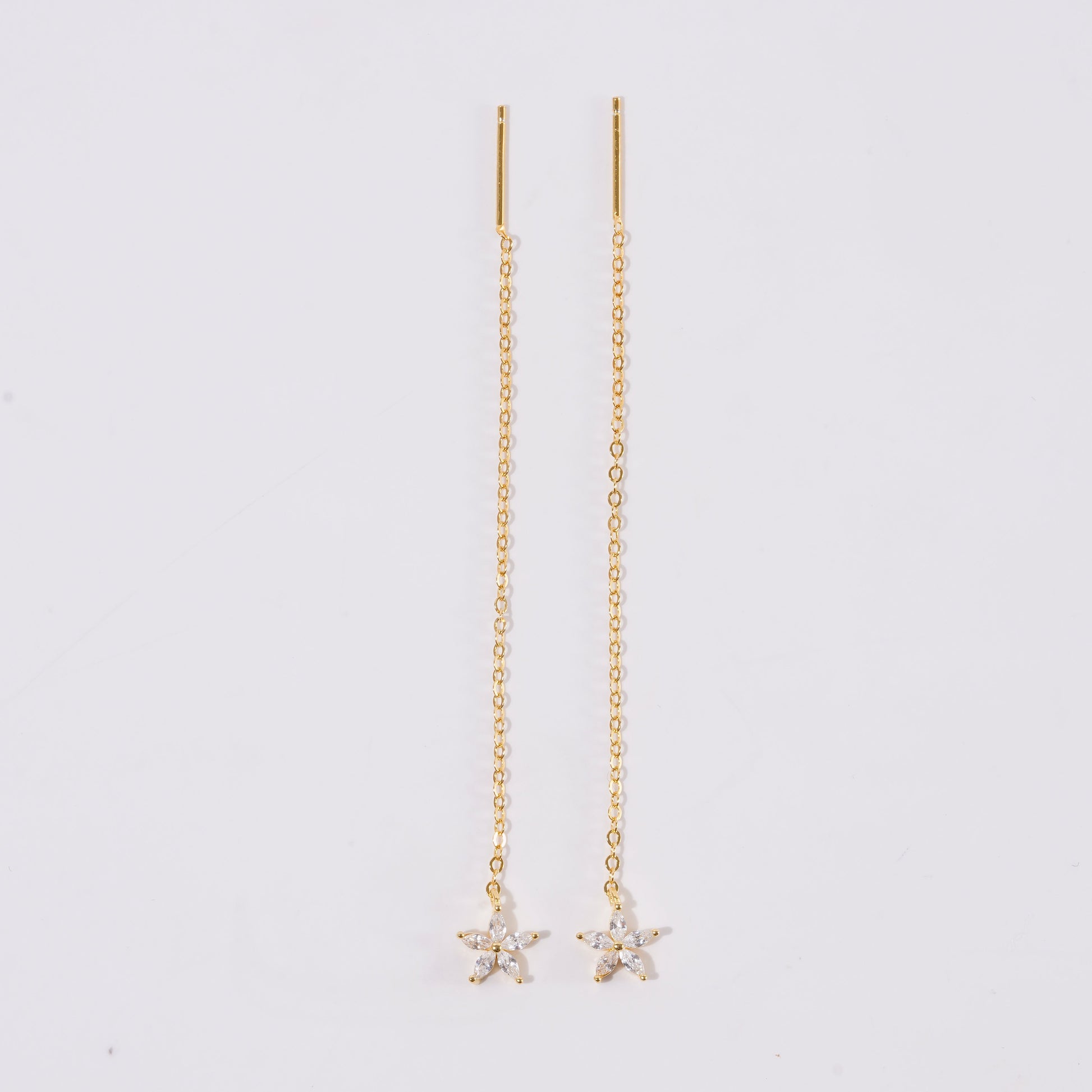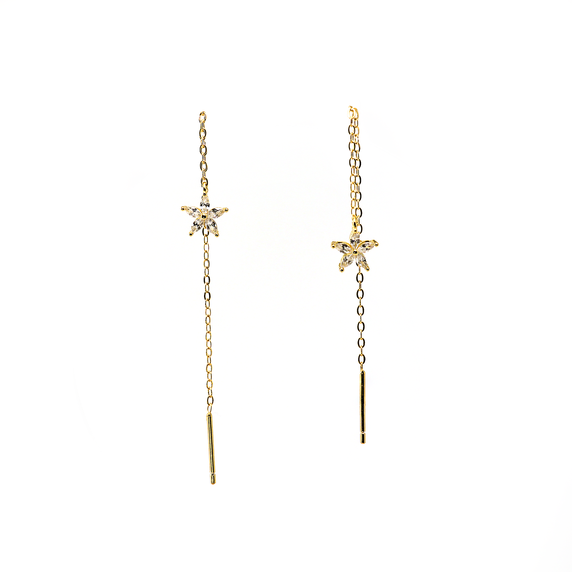 Add a touch of sophistication and femininity to your style with these gorgeous snowflake drop earrings. Available in gold and silver tones, their long, delicate design, embellished with a sparkling snowflake, exudes timeless elegance, perfect for any occasion.