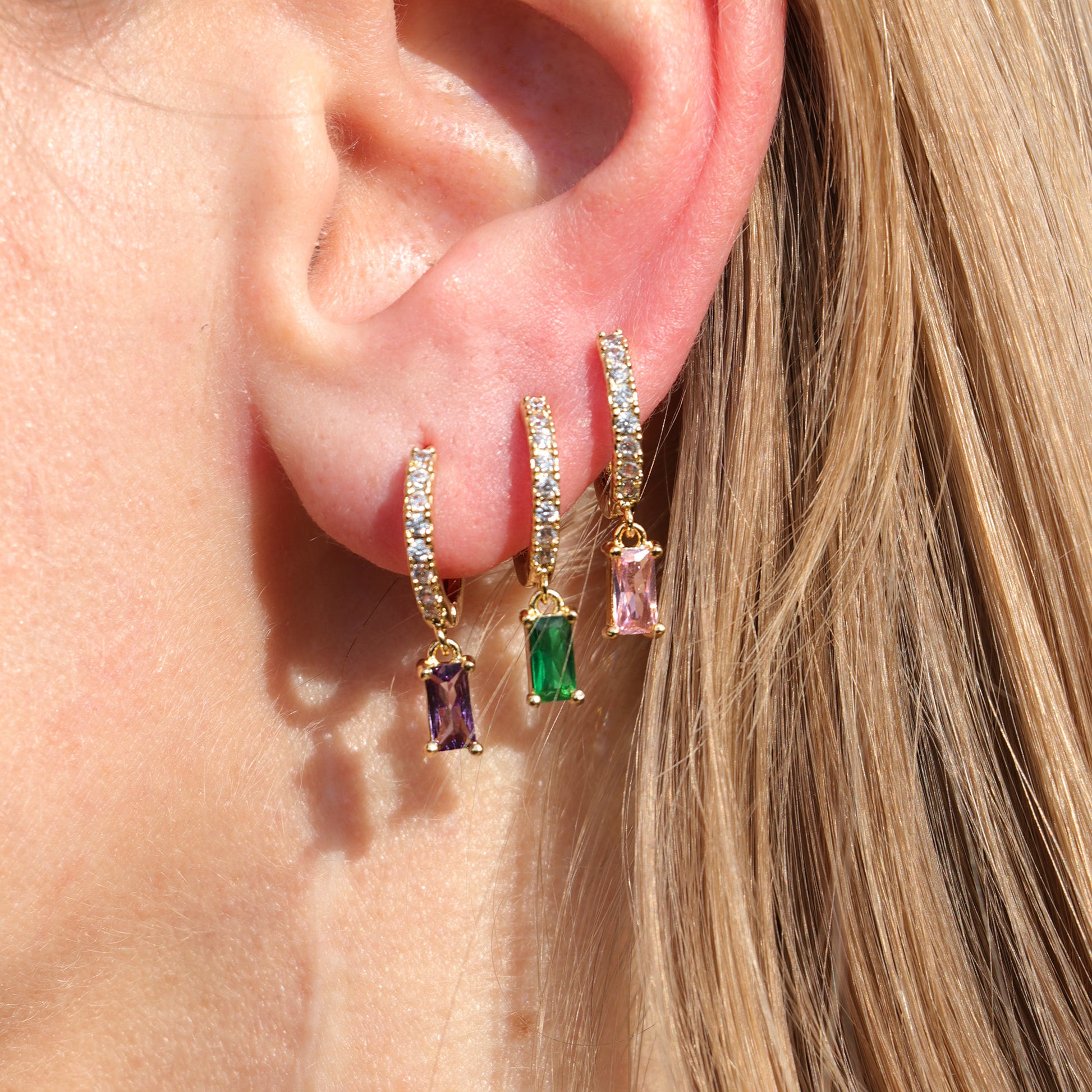 Un tocco di luce e colore per ogni occasione. Gli orecchini Liora, realizzati in ottone placcato in oro, sono impreziositi da zirconi luminosi e da un pendente rettangolare che cattura la luce a ogni movimento. Disponibili in tre varianti di colore – lilla, rosa e verde – si adattano perfettamente a look sia quotidiani che più sofisticati. Indossali da soli per un effetto raffinato oppure abbinali tra loro per creare combinazioni vivaci e uniche.