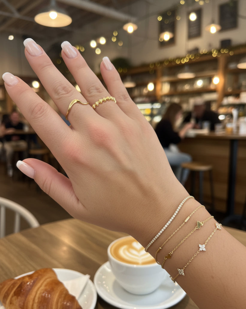 The Nova Arc features a unique wave pattern, embodying a modern, minimalist aesthetic. Available in two elegant colors—silver and gold—it's perfect for those who appreciate sophisticated yet understated jewelry. Its adjustable size comfortably fits a variety of finger sizes, making it a versatile and refined accessory for any occasion.