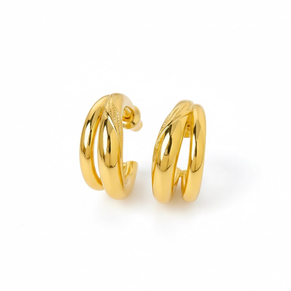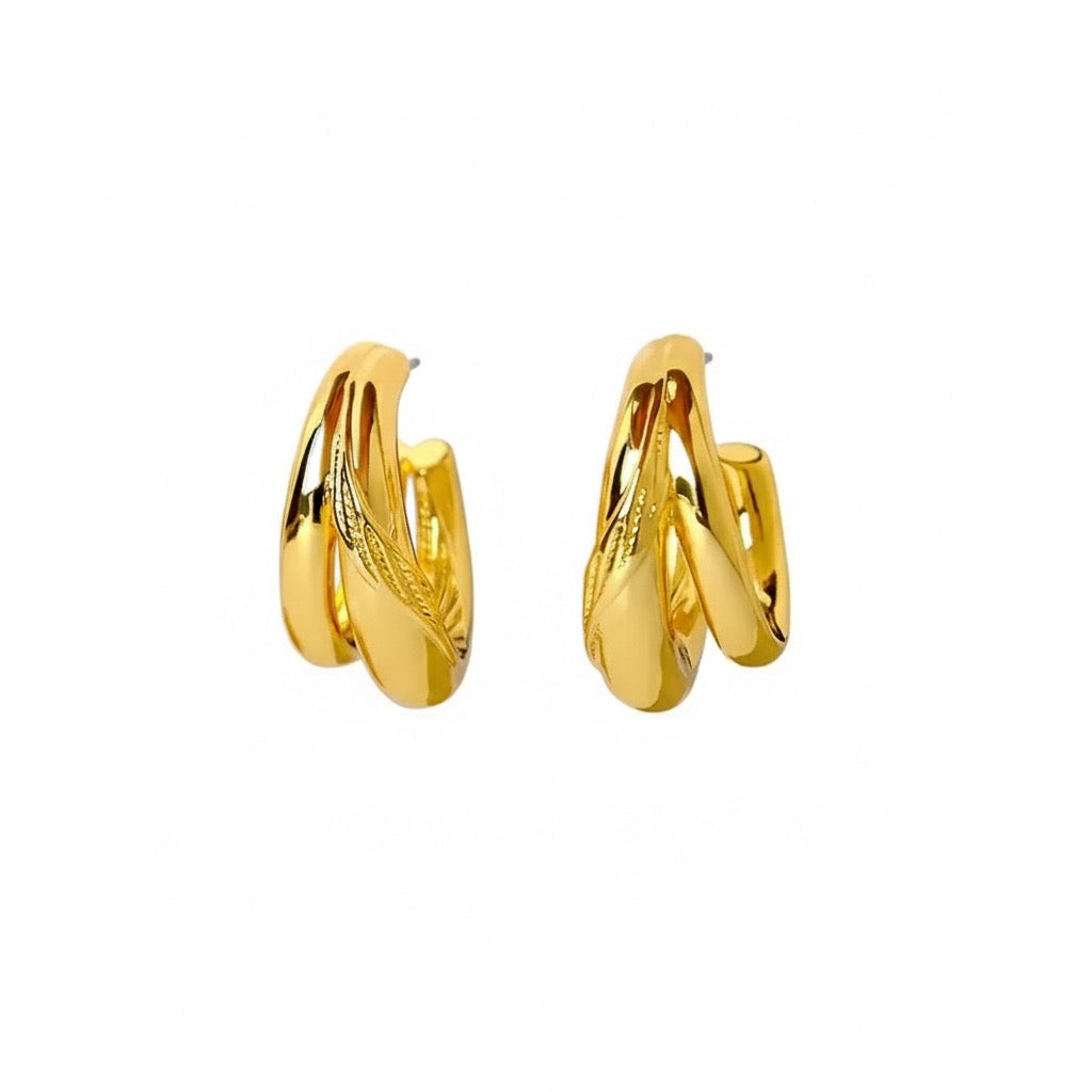 Eleganti e luminosi, gli Vellora sono orecchini a cerchio in ottone placcato oro dal design intrecciato e fluido. Le linee morbide e la superficie specchiata catturano la luce con intensità, mentre il dettaglio scolpito aggiunge profondità e raffinatezza. Leggeri e confortevoli, sono l'accessorio ideale per valorizzare ogni look con un tocco di eleganza moderna e senza tempo.