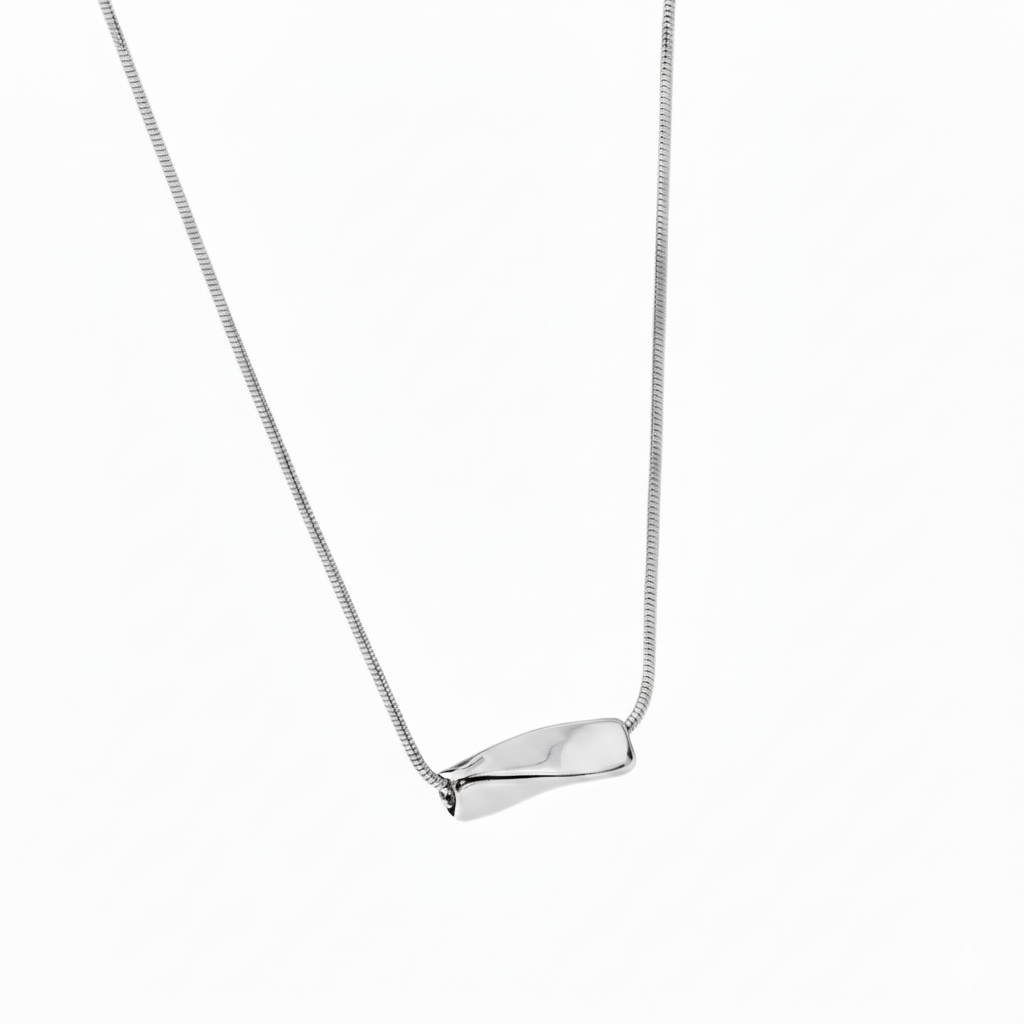 Questa collana Alba in acciaio inossidabile è caratterizzata da un design minimal con un elemento centrale dalle linee morbide e fluide, pensato per valorizzare il décolleté con discreta eleganza. Disponibile nelle finiture color oro e color argento, è perfetta da indossare ogni giorno o come dettaglio luminoso per look più sofisticati. Resistente, leggera e confortevole, mantiene la sua brillantezza nel tempo. Un gioiello versatile che si abbina facilmente ad altri accessori o può essere indossato da solo per un effetto pulito e moderno.