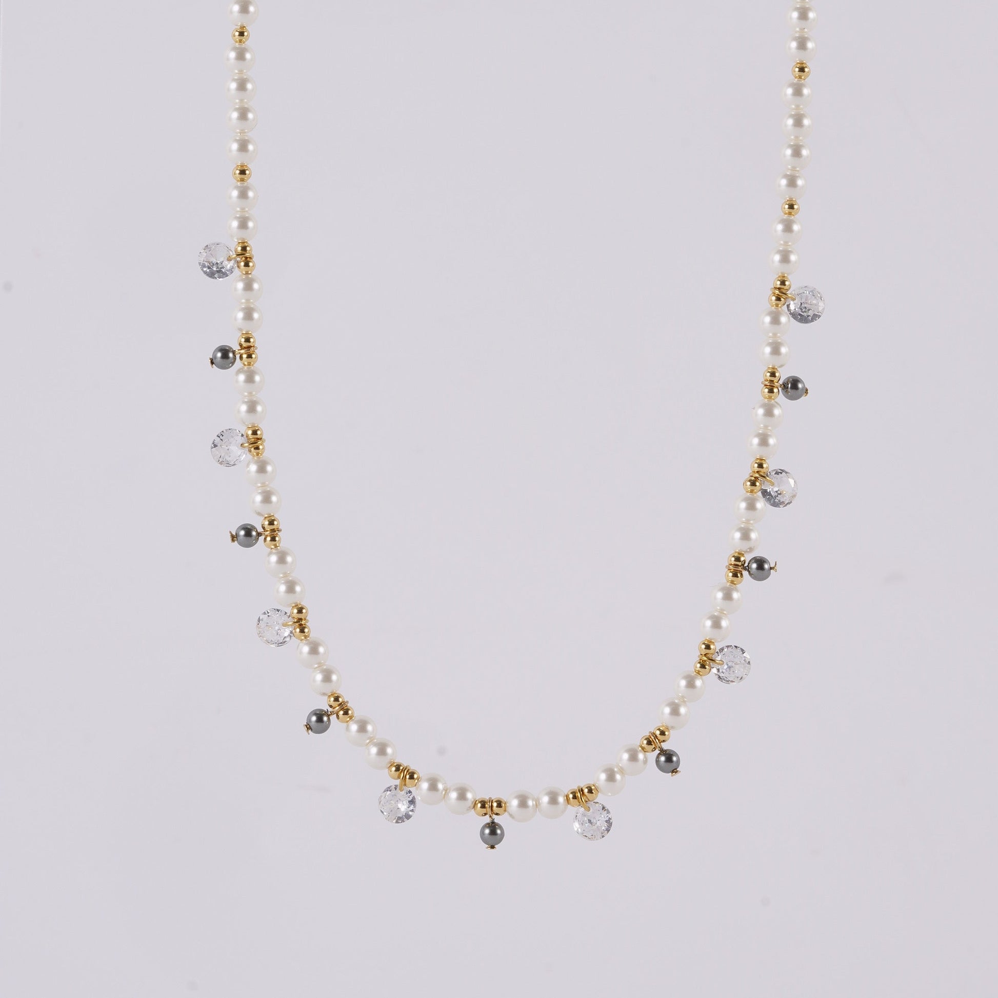 Un gioiello delicato e luminoso, perfetto per chi ama l’eleganza senza tempo. Questa collana presenta una raffinata fila di piccole perle bianche, arricchita da luminosi zirconi incastonati che aggiungono un tocco di brillantezza e raffinatezza. Il design sottile e armonioso la rende ideale sia per un look quotidiano chic che per occasioni speciali.